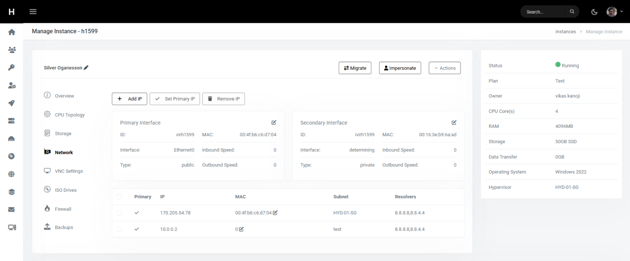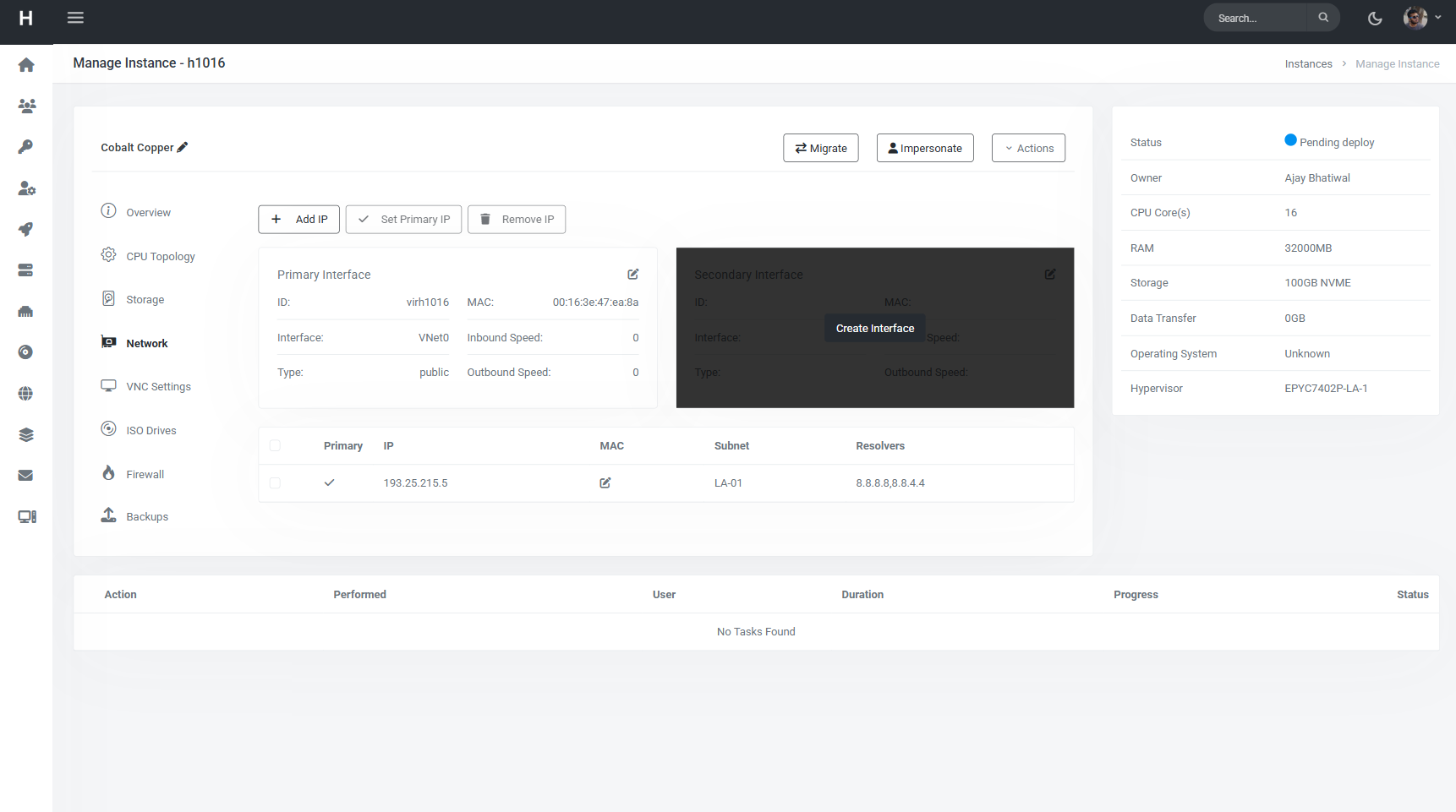 - By clicking the Create Interface button, you can activate the secondary interface which will automatically get an IP assigned.